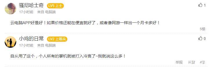 @骚尼哈士奇:云电脑APP好是好!如果价格还能在便宜就好了,或者像网游一样出一个月卡多好!