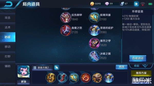 近卫荣耀、冷静之靴、极寒风暴、不死鸟之眼、不祥征兆、贤者的庇护