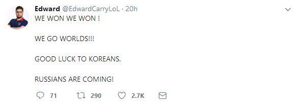 昨天,前身为M5的Gambit战队成功进军世界总决赛。他们的辅助选手兼队长Edward在推特下写下对世界赛的期待。