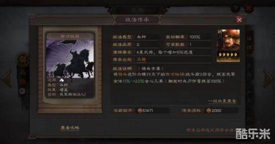 鉴于黄忠自带战法的25%会心特性,可以考虑携带提升会心概率的战法,从而提升黄忠的输出稳定性。能够提升会心几率的战法主要有:西凉铁骑、左右开弓、猛击。