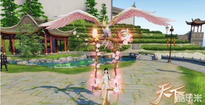 一架秋千满院香!与返场珍兽“莺歌轻舞”共看初春盛景!谁还不是小公主了!《天下》手游欧式幻想风绝美花藤秋千坐骑“莺歌轻舞”重返大荒。如果说城堡是王子的标配,那么这架秋千一定就是各位公主的标配啦!用爬满粉色桃花的藤条制作而成的秋千,造型华美精致,又不失少女般的可爱清新之感。秋千主体则挂在一根桃树枝条上,一只叼着灯笼的巨型白羽金喙鸟正抓着枝条将秋千带飞至空中,让你与云朵共舞。整个大荒仿佛都成为了你的后花园哦!桃枝左端还有一窝雪白可爱的小雏鸟在叽叽喳喳说个不停,整个画面温馨又美好,最适合与姐妹们来个舒舒服服的下午茶啦!