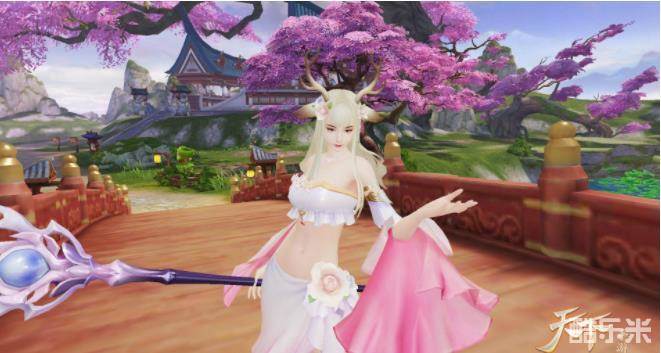另一边的“白鹿花灵”时装则有着与“狂骨野兽”完全相反的气质。奶金色的长发上,是一对可爱的下垂鹿耳,以及两枝圆润小巧的鹿角。转个身,还能看到一截迷你鹿尾正乖巧地伏在后腰上,正与“白鹿花灵”的名字相呼应。一片式抹胸分体裙装则大面积采用了柔嫩的粉色与梦幻的轻紫,极致温柔。两边的百褶长袖微微向上翘起,仿佛绽放的花朵在期待着春日的雨露阳光。那些霸道兽总与娇俏鹿仙不得不说的故事,只等你和情缘一起上演!