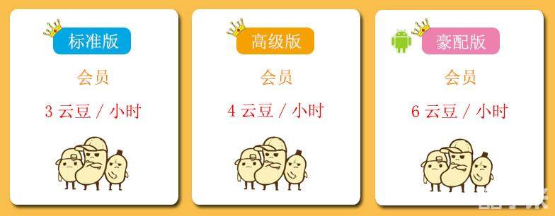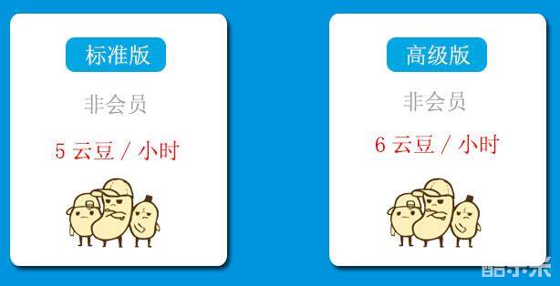 标准配置是5云豆/小时,高级配置是6云豆/小时。
