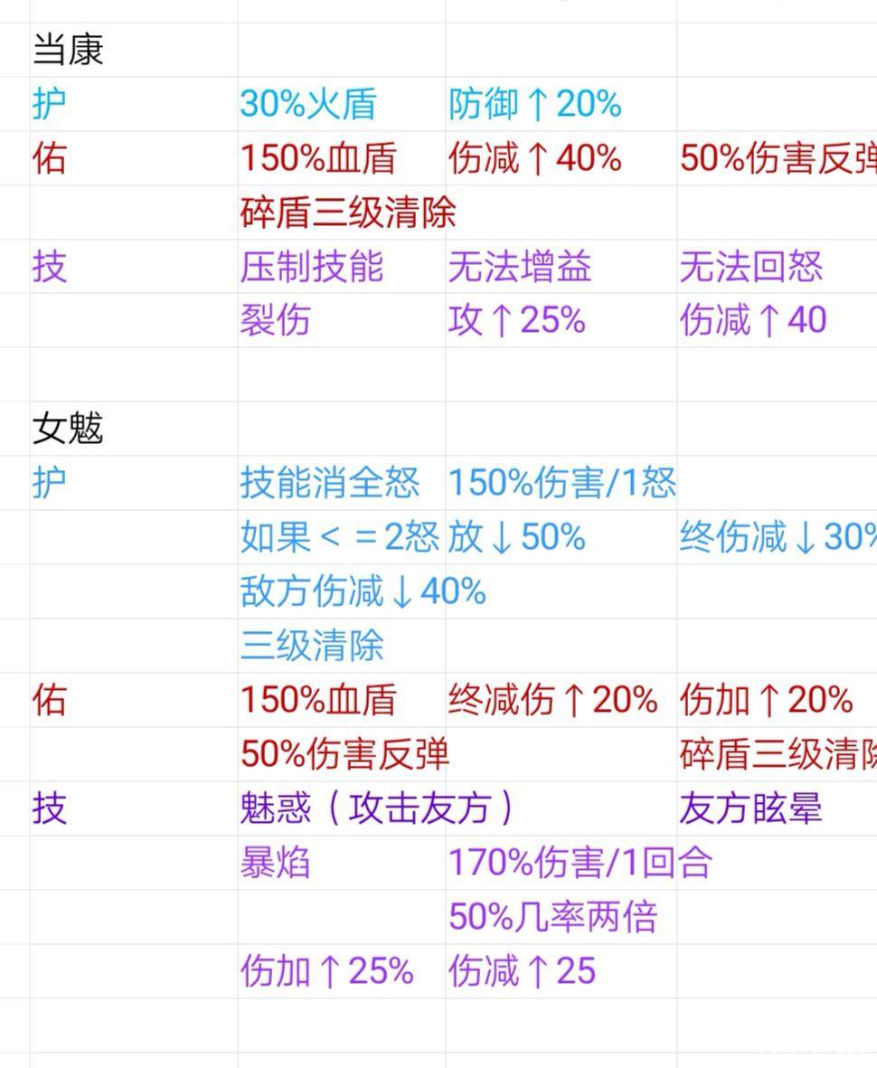 然后就是随机三人的三级清除,当下版本中三级清除主要有碎盾清除以及狰的清除两种。有的人可能会说了不是还有大魏国的夏侯惇么?然而夏侯惇需要四星才开启三级清除,触发条件也高,需要主角配合,使用门槛较高。而碎盾清除的次数又只有一次,狰的随机一个单位清除又不够明确。相比之下,女魃的清除就更加给力。主力后移的情况下一般可以防住张辽夏侯的双控组合,有效的保证输出!