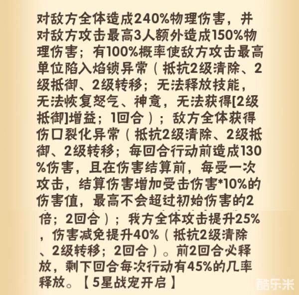 伤口裂化异常的描述可能会有少年看不懂,说一下吧,就是给敌方武将附加异常之后受到伤害越高,异常伤害越高,最高能有260%的伤害。