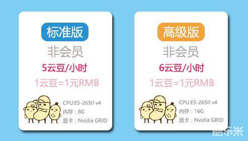 高级云电脑配置为:至强E5 2650 V4处理器 内存为16G 显卡则是英伟达高端显卡