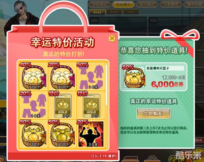 活动规则:玩家每日可以抽取一次购买特价道具的机会。抽到的特价道具到次日上午7点可购买,但只可购买一次。