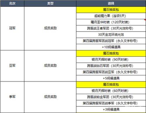 而前三甲的军团成员们也都可获得如下奖励内容: