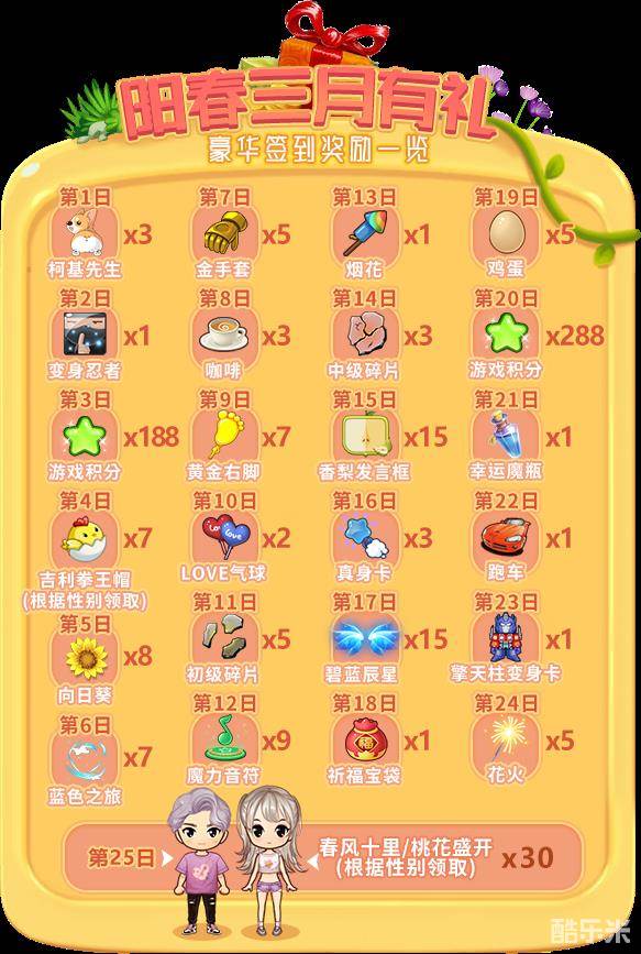 4) 最多可累积25次“豪华签到”奖励领取次数,奖励仅在当月有效,次月清零。