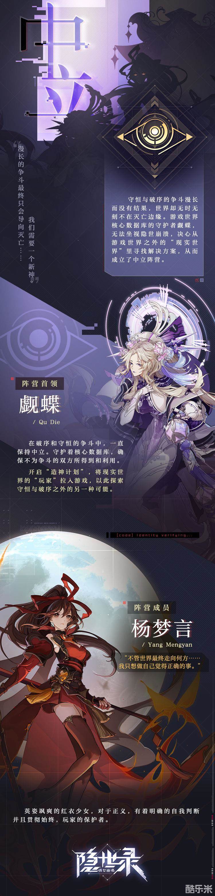 “守恒”与“破序”的争斗漫长而没有结果,世界却无时无刻不在灭亡边缘。游戏世界核心数据库的守护者觑蝶,无法坐视隐世崩溃,决心从游戏世界之外的“现实世界”里寻找解决方案,从而成立了中立阵营。其他无意于争斗的中立者们,也因此聚集起来,共享情报,迎接各自未知的命运。