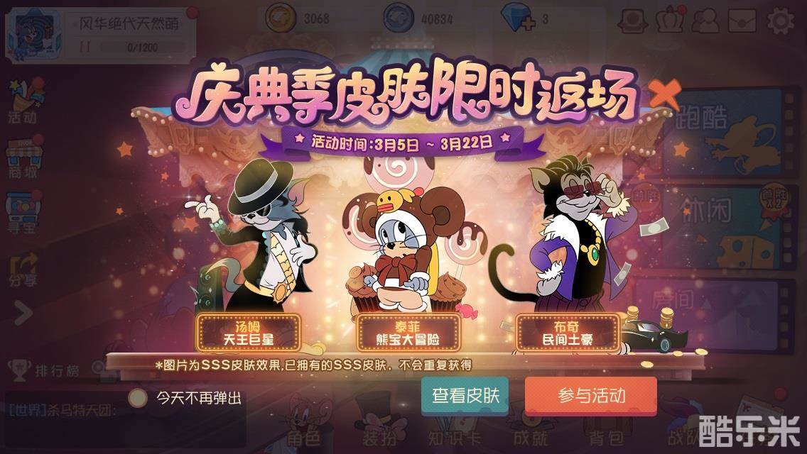 网易欢乐互动手游《猫和老鼠》女生节活动即将开启,庆典季三大S级皮肤惊喜返场,丰富活动同步开启,即刻登录游戏,欢喜追逐过佳节!
