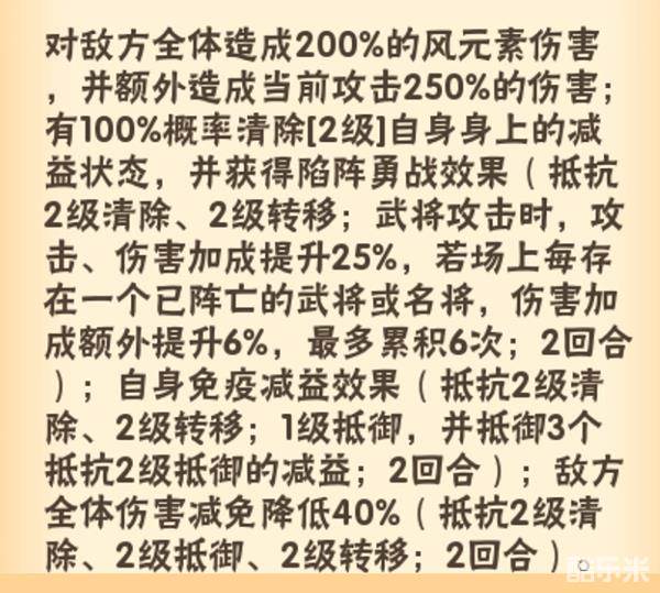 抵抗2级清除和转移的增益是加25%攻击和增伤理论上伤害加成最高额外叠加66%,减益是敌方全体伤害减免降低40%,从数值和目标上看都是非常给力的。