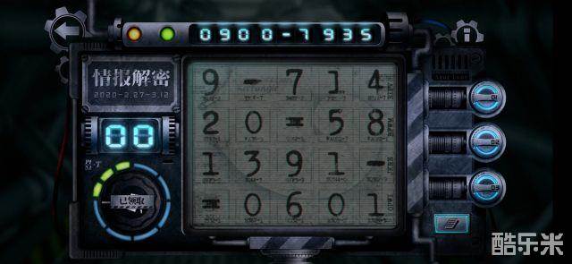 全情报解锁后右下角有个图标 点击出现数字界面 然右边有三个按钮 从上往下的顺序会有三张解谜图 按909 0-7 935依次按就行了。