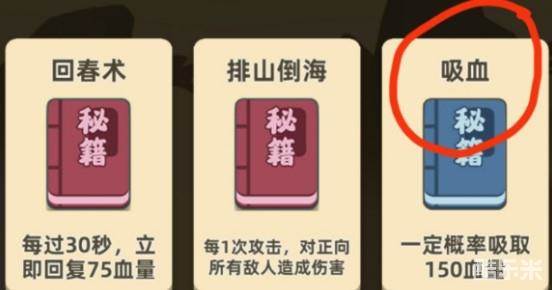 首选吸血,其次功力提升(大)、血量提升,然后就是群攻三剑客:排山倒海、隔山打牛跟背向攻击。