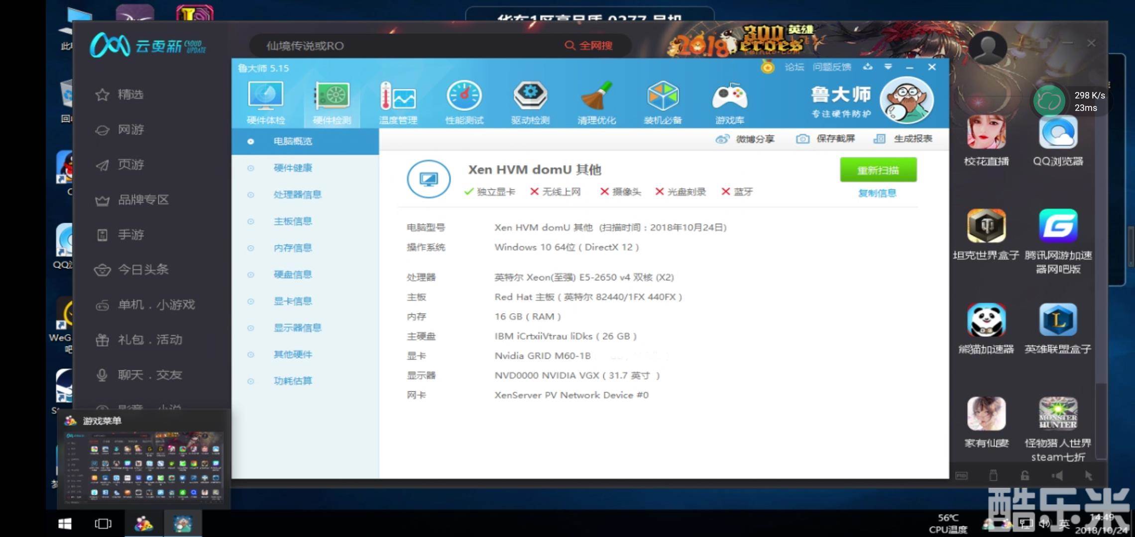 但是,如果早点知道云电脑可能就不会有这样的事情发生了。这样笔者在现有配置保持不变的情况下通过云电脑就能获得高端游戏电脑的性能。初次使用云电脑看到配置让人十分惊喜。E5 2650 V4的CPU 和16G的内存以及高端英伟达显卡还有海量的游戏都已安装好。这些配置笔者粗略算了下,将近上万元的配置。那么价格都过万了,性能自然也是不弱的,基本上大型端游和3A大作运行起来是没有问题的。