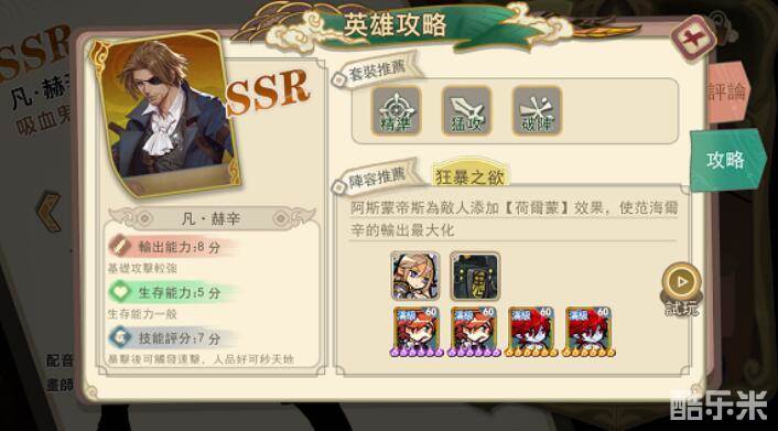 根据之前已经发布的预告在接下来的卡池当中就会迎来新SSR范海辛的登场了,尽管在本作中SSR的品质不算是最高的但是参与过之前测试或者了解台服的玩家应该都知道范海辛有何等的强度。如果其加入国服的版本技能未做修改那么很可能他将会对目前版本的环境造成相当强烈的影响。现在就为大家带来大王不高兴暴力输出范海辛技能介绍。