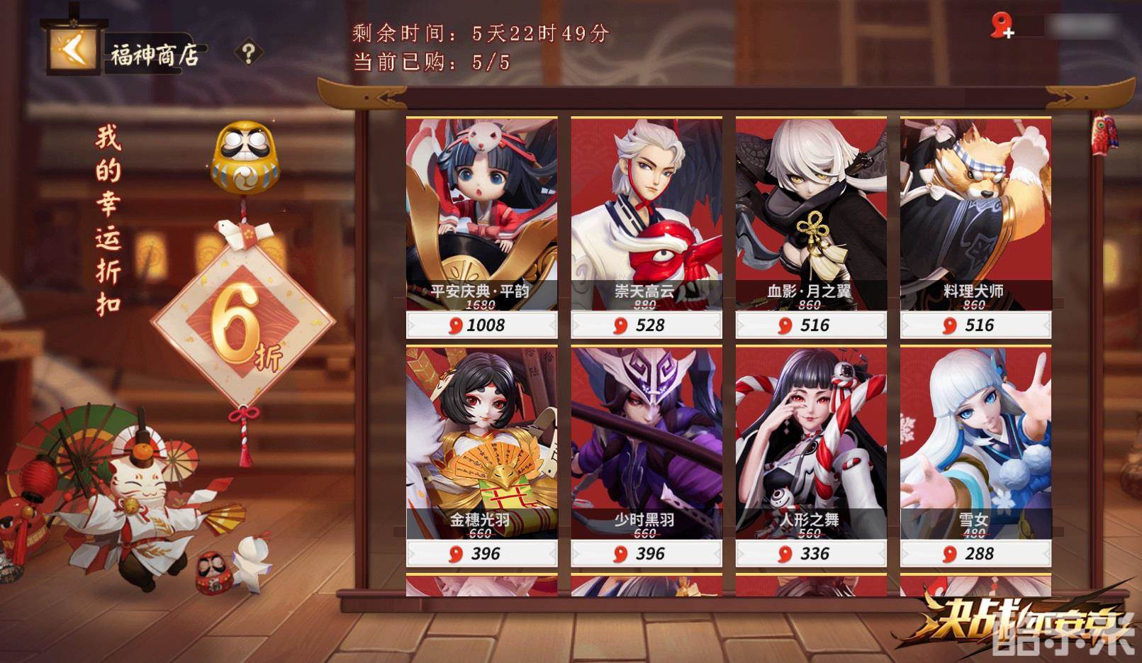 春日活动期间,集好运、福气于一身的福神也将降临平安京的世界。3月6日游戏维护后-3月12日,《决战!平安京》将为阴阳师大人们限时开放专属[福神商店]。活动期间,大人们将有机会前往福神商店,抽取属于您的专属折扣!