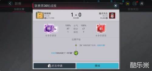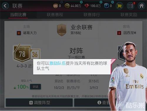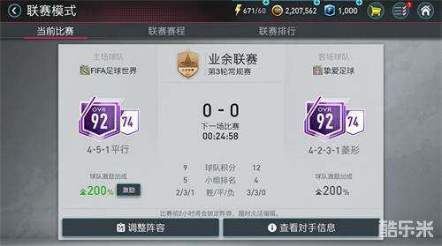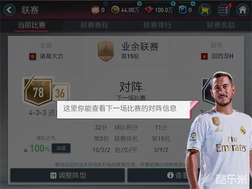 在“联赛模式”中,玩家可以详细的看到下一场比赛的信息。