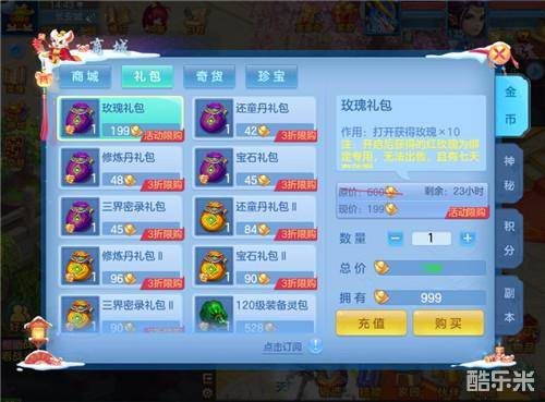 新功能“帮派活动队伍总览界面”上线后,周二、周四帮战或开启帮派黑龙活动时,帮派聊天频道的上方会显示横条,点击横条可以查看相应活动的队伍情况,以方便玩家进行组队。聚宝盒优惠月卡福利放送 玫瑰礼包限时特卖开启除新玩法、新功能外,《神武4》手游还为三界少侠推出了“聚宝盒优惠月卡”、“玫瑰礼包”限时特卖等众多福利。3月9日9点后,聚宝盒优惠月卡功能限神武4系列服务器上线,与正常购买点数相比,购买月卡将享有7折优惠。同时,可以购买不同任务类型的月卡,购买后30天内能免费发布对应委托和使用对应宝盒任务,持续为三界少侠解锁更多优惠服务。