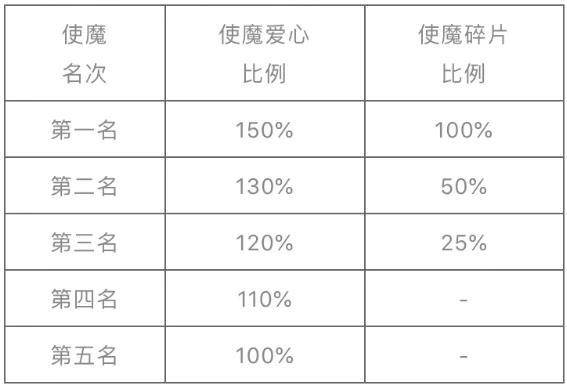 ②活动代币:每份应援至少获得160【使魔爱心】,即第五名每份应援可获得160代币,第一名每份应援可获得240代币