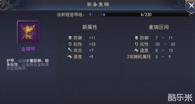 可重铸装备可经由重铸系统对装备的属性进行修改,重铸的数值范围由锻造等级决定重铸时,基础属性只会变动数值,额外属性的变动由符石决定。