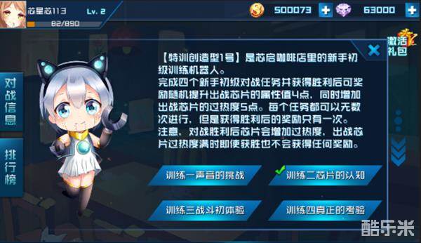 训练二任务的对战中只能使用芯片技能,当技能可以使用时会有明显的提示。任务让新手能清楚芯片特技的选择和使用在对战中的重要性。