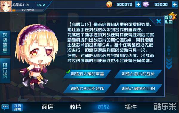 训练一任务的对战中只会出现插件系统,让新手明白插件选择和配置使用。