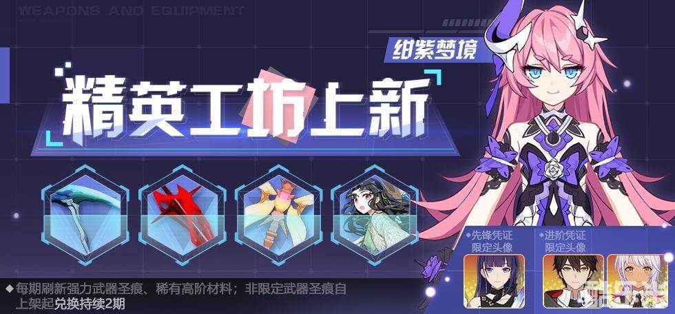 ★「精英工坊」商店:本期新增强力武器-恒霜之斯卡蒂、鲜血之舞、超维☆奏鸣曲;圣痕-莫奈的兑换。