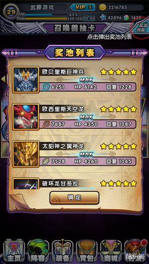 游戏王战记抽卡的模式十分特别。游戏中设置有总奖池,奖池内显示你有可能抽到所有卡片,VIP独占卡片不会在奖池内出现。玩家可以通过点击奖池列表查阅信息。