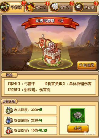 城防所是对这些防御塔进行强化升级的、防御塔的等级越高,攻击速度、攻击范围和攻击伤害就会越高。防御塔的具体攻击效果如下: