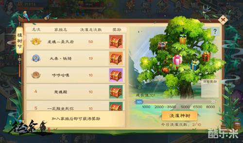 邀请家族成员一起照顾小树苗,等到小树成长为参天大树之时,少侠就将收获丰富的奖励。