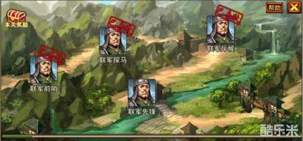 过关斩将有很多关卡,每个关卡有30名守兵与1名守将,玩家只需击败某一关中的守兵就能通过本关,可领取本关通关奖励,并可挑战下一关。