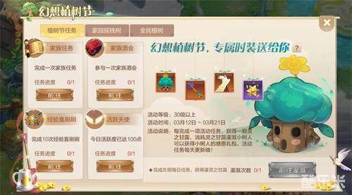 在“家园摇钱树”活动中,幻想家在家园种植摇钱树即可获得“摇钱树礼包”和“家族红包”;在“植树节任务”活动中,幻想家用“灵之甘露”浇灌小树人后,就有机会获得“自然之力”、“树洞仔背包”等丰厚回礼;在“全民植树”活动中,小树人在大家的辛勤浇灌之下,每次成长后都会派送福利,包括“自然之力”、“龙脉精华”、“水晶宝箱”等谢礼。