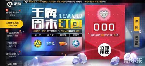 伴随着新赛季的启动,《王牌战士》手游全新福利“周末红包活动”和“三月许愿池”同步上线!目前是“周末红包活动”第一阶段,玩家在3月13日前累计登录4天且完成任务领取当日奖励,同时存一笔钻石到红包中。然后在3月14日(周六)登录游戏,最高可以领到100钻石;活动第二阶段将于3月15日-3月20日进行,奖励将于3月21日(周六)发放。