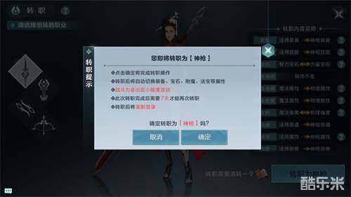 转职需要在夏都城地图,在背包里点击转职道具-使用,就会进入职业介绍界面啦,我们可以在这个界面看到所选择职业的特性,选中左侧职业图标之后,点击下一步,系统判断满足转职条件会扣除道具,之后重登游戏即可转职成功。
