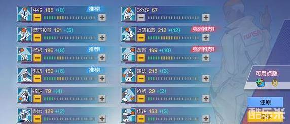 优先选择上篮扣篮和盖帽这两项,其次是中投和上篮扣篮以及篮下投篮,分配的比例依玩家所擅长的进攻方式而定。接下来我们着重提升耐力、控球这两项,因为分位需要足够的耐力应对时常的跑动。然后是抢断、对抗方面帮助防守,最后才是篮下属性的提升。