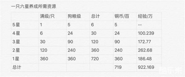 除了一个主力五星我们不计算,相信大家都有了。所以我们还需要再养5个5星的狗粮
