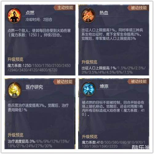 即将加入亚山战局的圣堂英雄刻理兹托夫,曾作为圣裁官统治着地处狮鹫公国与恶狼公国之间冲突区域。天赋方向领袖、军备、魔法,主技能“点燃”可给对手造成火焰伤害,被动技能“热血”可一定比例提升出征队伍人口上线,并提高三军生命,被动技能“医疗研究”可加快治疗速度,降低治疗费用,被动技能“燎原”可使被燃烧的目标不受控制,随机移动。因为全面的技能效果,刻理兹托夫势必成为未来版本里的大热门。
