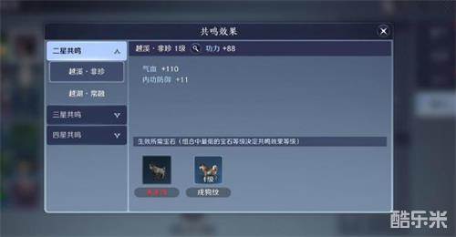 1、二星共鸣:分越溪非珍和越湖常融,前者提供气血、内功防御,后者提供气血、根骨;