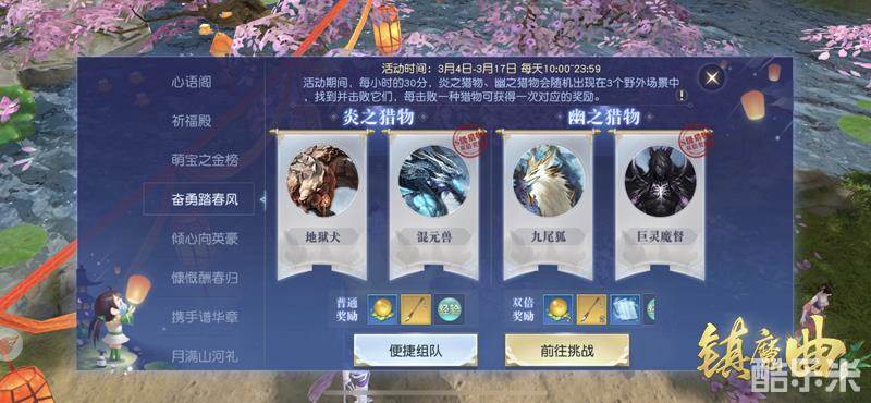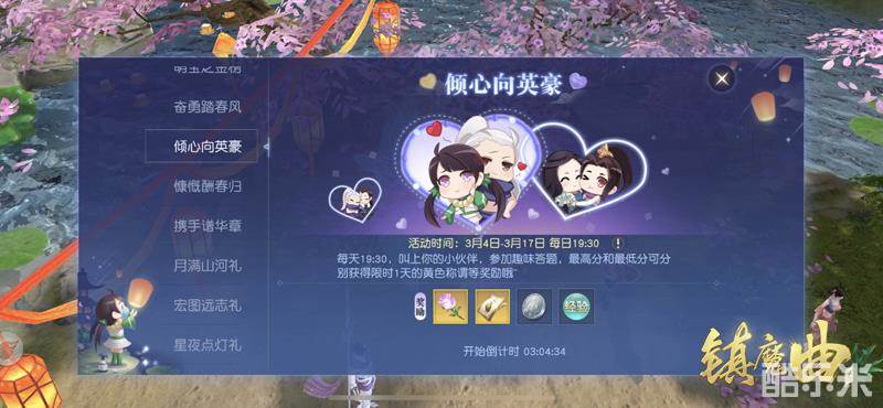 《镇魔曲》“情暖人间”大型庆典中,还为天命者们准备了各类趣味十足的活动——参与日常玩法获取“春醉图碎片”,天命者们可以在“携手谱华章”活动里玩一把拼图;每天晚上19点30还能参与“倾心向英豪”趣味答题活动、羸取丰厚奖励!全新萌宝神通玩法专属活动中,天命者们还能参与“萌宝之金榜”,根据萌宝实力排名、收获不同的珍稀好礼!