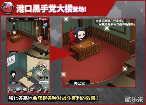 港黑大楼和侦探社事务所的模块设定相似,都划分了不同的区域,每个区域有不同的人接管并且可以单独升级。而港黑大楼中的小人也都很是可爱,譬如森鸥外的办公桌前,你有可能看到爱丽丝正爬在地上画着儿童简笔画,非常能戳人萌点。