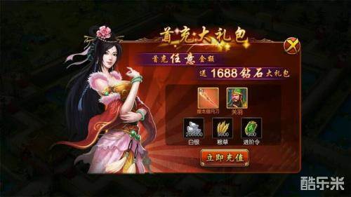 在游戏首冲是比较特别的,和一般的游戏有点差别,首冲最低额度6元,是能获得橙将关羽的,因为开服前7天都是能获得充值双倍,所以可以先接受最低额度的消费,如果开局还可以,再进行后续操作。