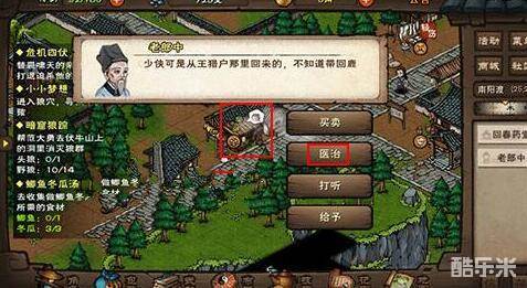 需要和我们对接的npc就是老郎中了,具体的坐标位置就是(25.23)了,我们去那边就可以看到了,然后按照上面的步骤走,就可以痊愈了,这点倒是不太难得,然后我们就可以继续去做任务了。