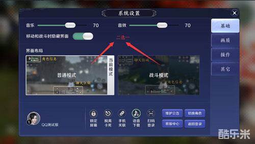 点击屏幕右侧的勾玉符号,进入后点击最下方的设置栏目,即可找到自定义战斗模式。此时,玩家可以对画质进行调整。注意,这里的画质有多种模式,玩家尽量根据自身的需求选择获取。