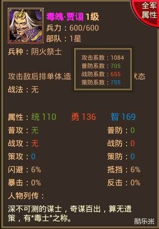 风云天下武将介绍毒魄·贾诩