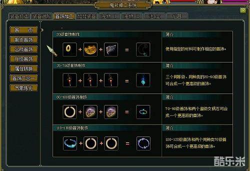 《问道》中的首饰分3种,分别是手镯、项链、玉佩,其中项链的基本属性为增强法力;玉佩的基本属性为增强气血;手镯的基本属性为增强伤害。随着饰物的等级的提高,其基本属性也会增强。玩家可以使用指定材料合成20级首饰;使用三个同等级的20-60级首饰合成一个更高级的首饰;使用70-90级首饰和超级女娲石两个合成100级以下首饰等。