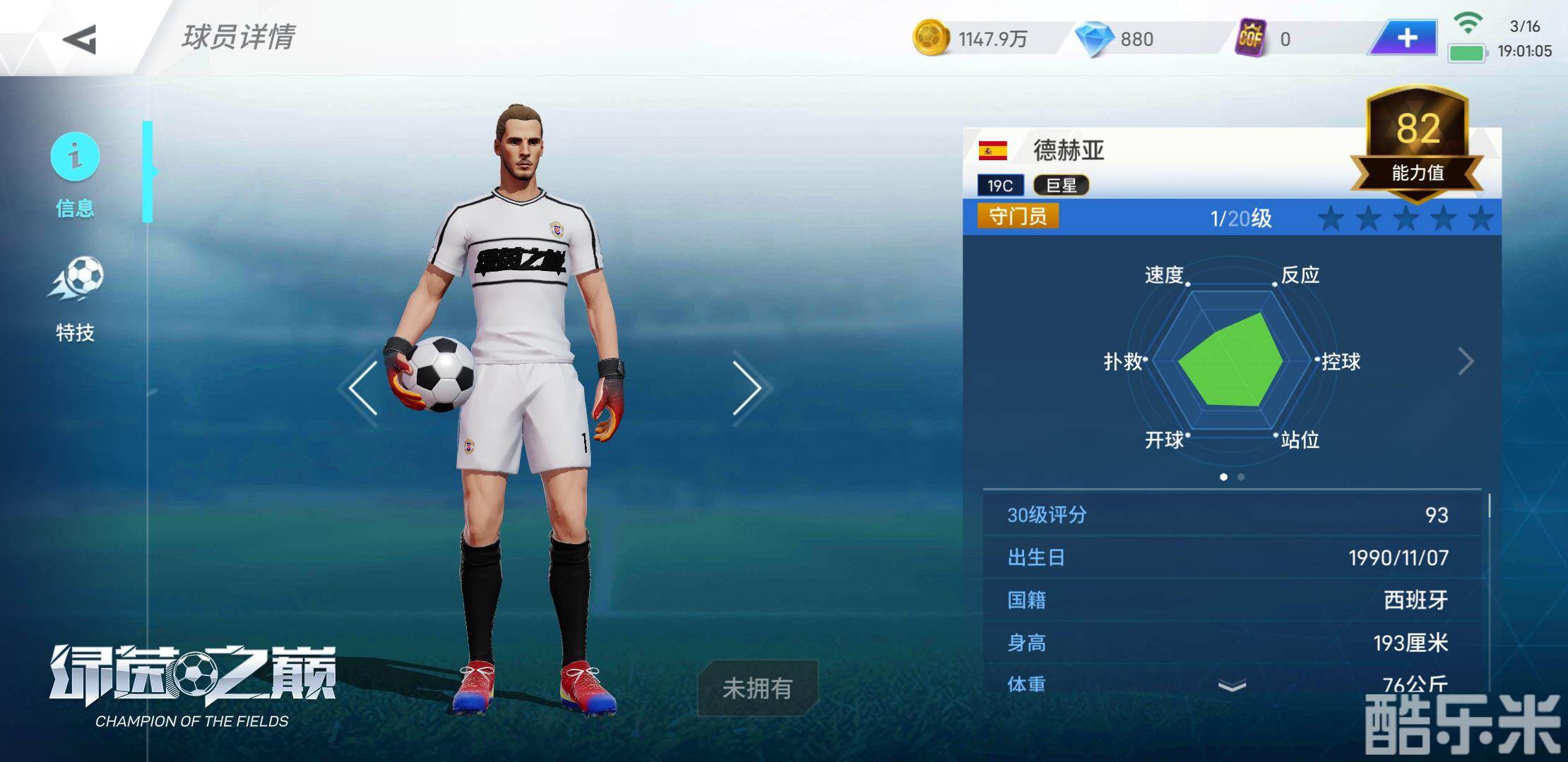 作为曼联的门神,游戏中的德赫亚同样十分出色,初始门将反应数值将高达88,即便门前状况再混乱,也能迅速作出反应。同时,他的站位和扑救属性也都达到了初始80+。他高大的身材增加了他的防守面积,让已经突破后防的前锋球员感到无比的压力。将德赫亚这位精英级门将带回自己阵中,无疑为球队增添了一面无法突破的巨盾。