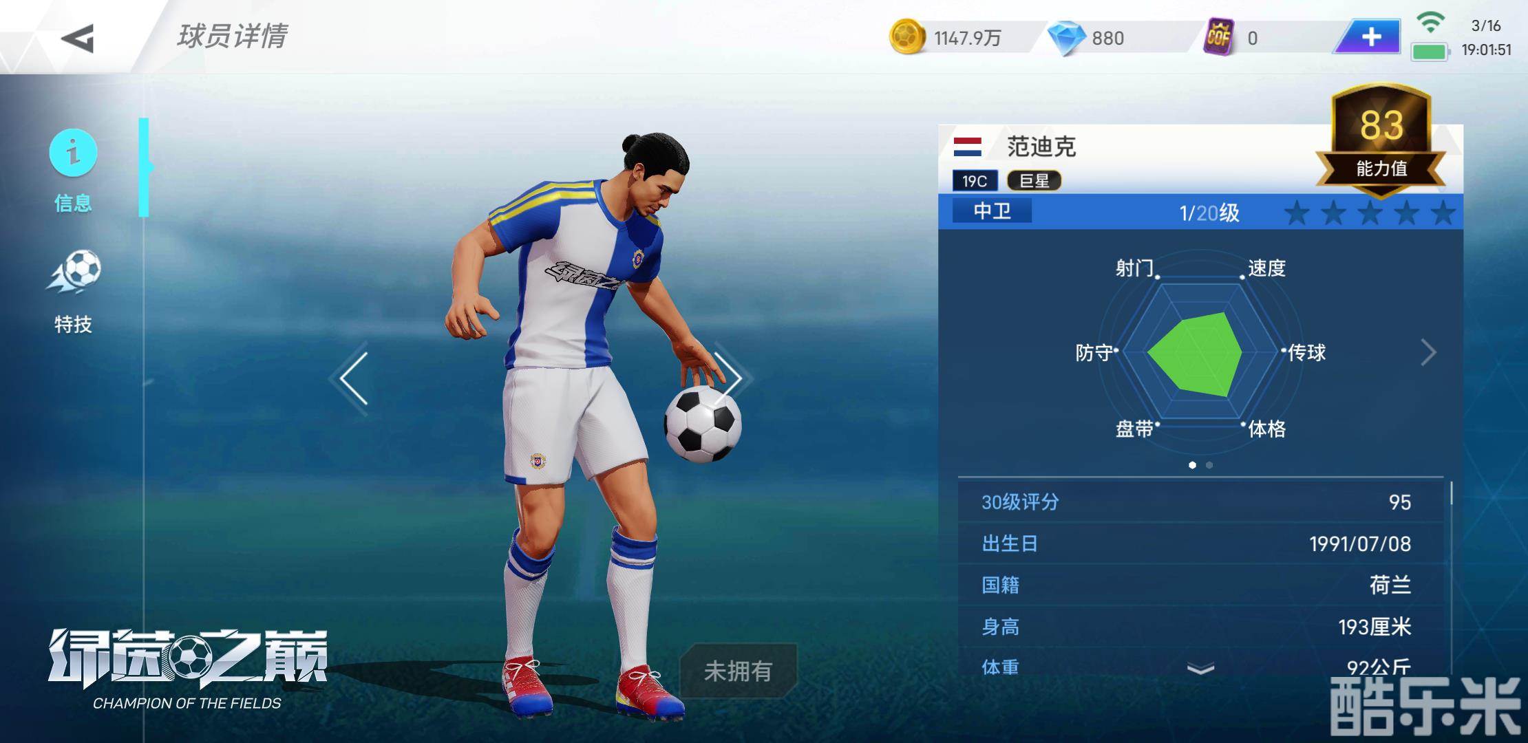 体格往往是评选优秀中后卫的重要标准。而《绿茵之巅》完美还原了实际中范迪克的强壮体格,初始强壮属性达到惊人的89,高于大部分同位置球员。这为他在防守时的身体对抗提供有力支持。与此同时,在盯防、抢断、战术意识等后卫关键属性上,范迪克也无愧欧冠最佳,多项数据均超过了85。进攻端的范迪克也是存在感十足。85的弹跳属性和82的头球属性,一旦被范戴克找到机会,对手将很难限制他的头球。