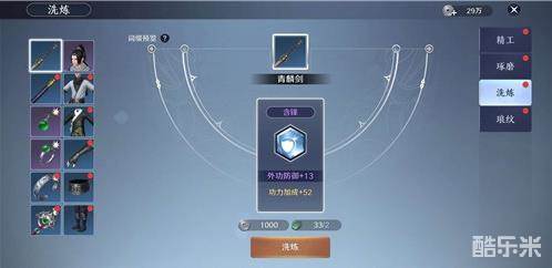 其实在游戏中装备附魔的正确名字应该是洗练,洗练的时候可以为装备提供7种不同的词缀,这其中词缀分别是厚德、含锋、蓄雷、淬力、益气、慧观、养髓。这其中不同的词缀分别增加了不同的效果。