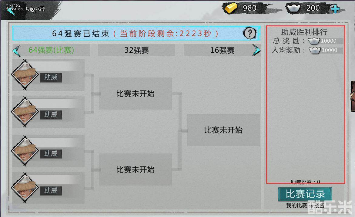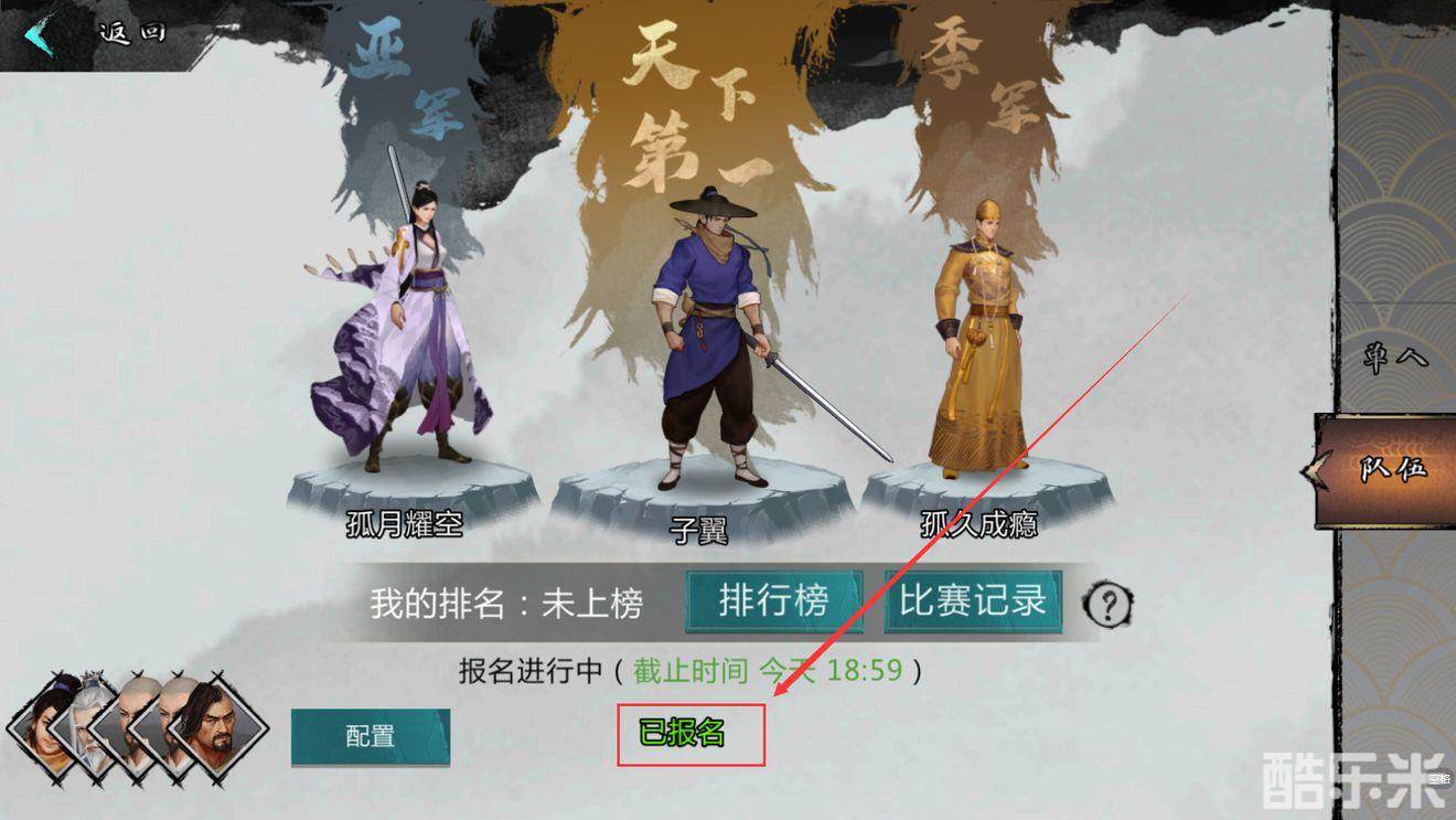 咚咚咚,这就是擂台赛界面了,擂台赛关闭时,只可以报名和浏览上届擂台赛排行榜。